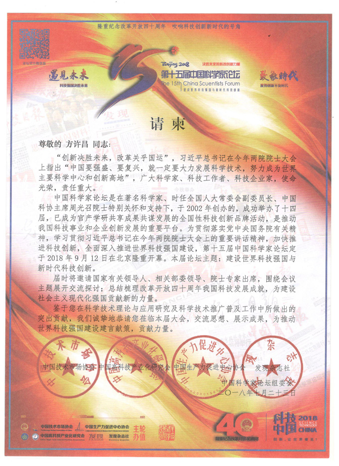 15 - й Форум китайских ученых пройдет с 12 по 13 сентября 2018 года в Пекине. Форум также пригласит г - на Фан Сючана, председателя и генерального директора Shenzhen Qiaxin Wujin Co., Ltd. Вместе с людьми из всех слоев общества мы будем обмениваться идеями, демонстрировать результаты и активно содействовать развитию научных инноваций в Китае.